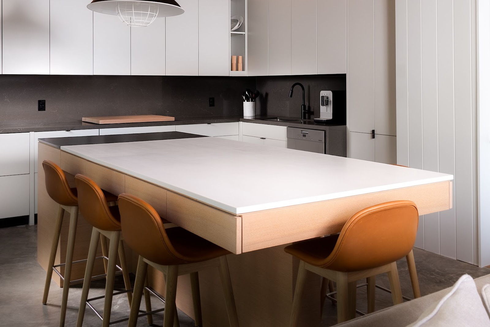 It provides clutter-free functionality. It allows for critical storage and display areas to exist without disrupting the design's clean lines. As professional photographers like Medlina from Spark Studios Inc. have praised, our spaces are "filled with precision, quality and incredible attention to detail", which is most visible in these clean, minimalist elements.